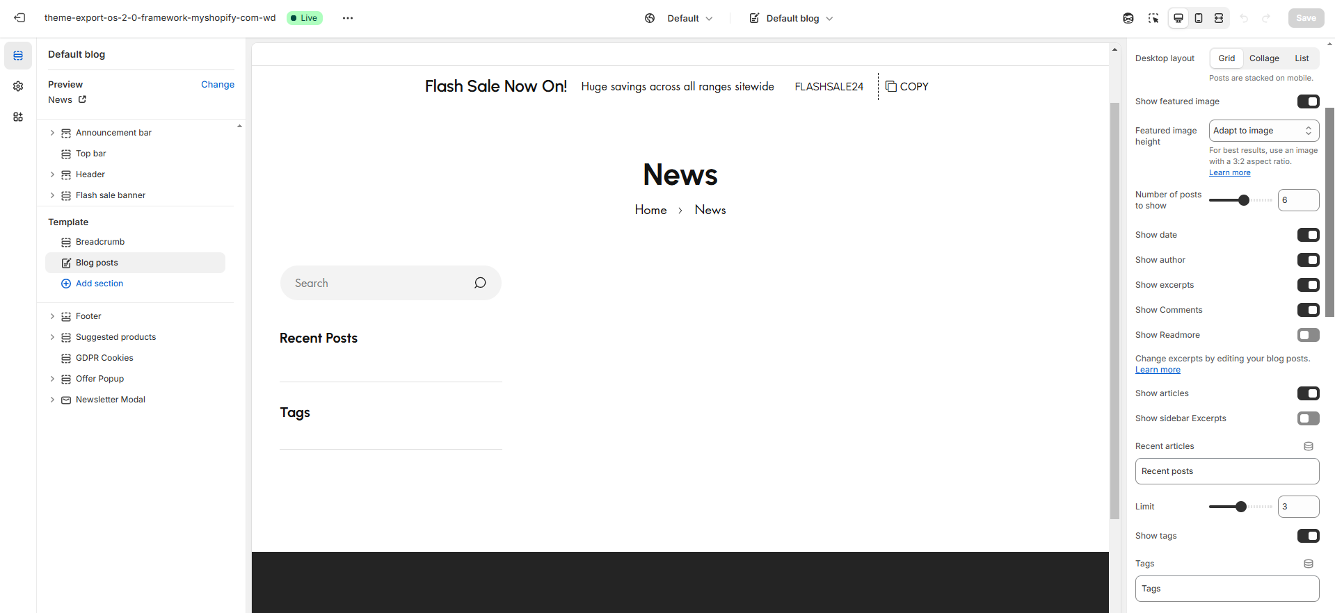* **Desktop layout:** Blog can be styled in 3 format **(Grid,Collage)**