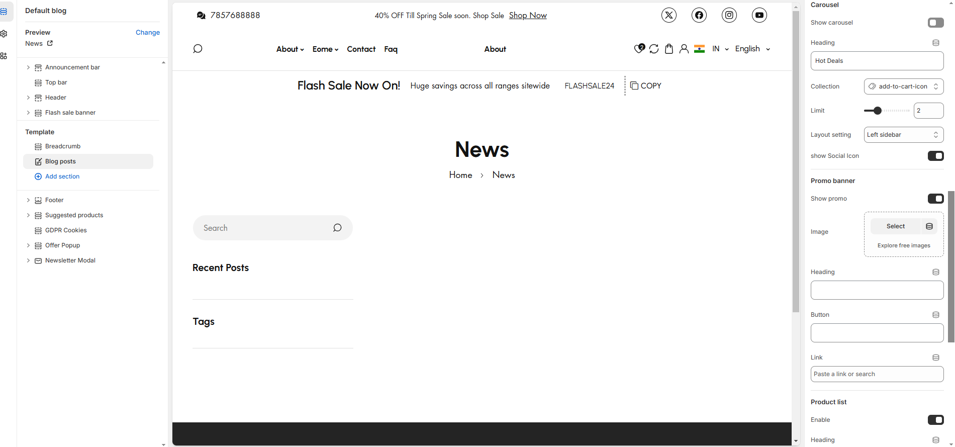* **Show Carousel:** Add a carousel to display featured blog posts.