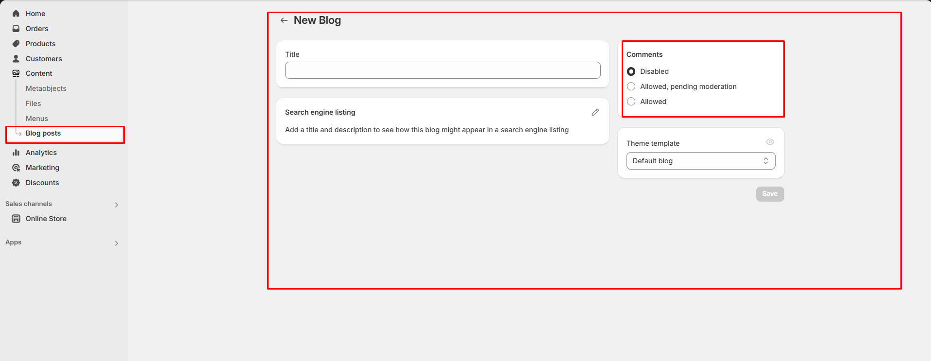 Comment should be enabled in the back-end  **Dashboard > Blog post > Manage Blogs (top of the blog post dashboard panel) > Add Blog > Allowed**