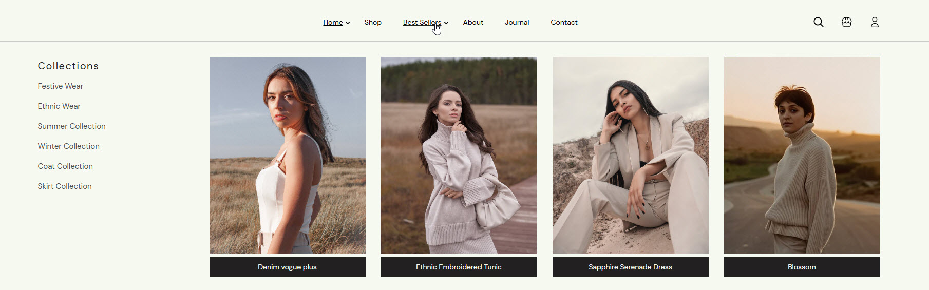The **Product Section** in the header allows you to showcase specific **products within a megamenu**, making it easier for customers to access featured or best-selling items directly from the navigation.