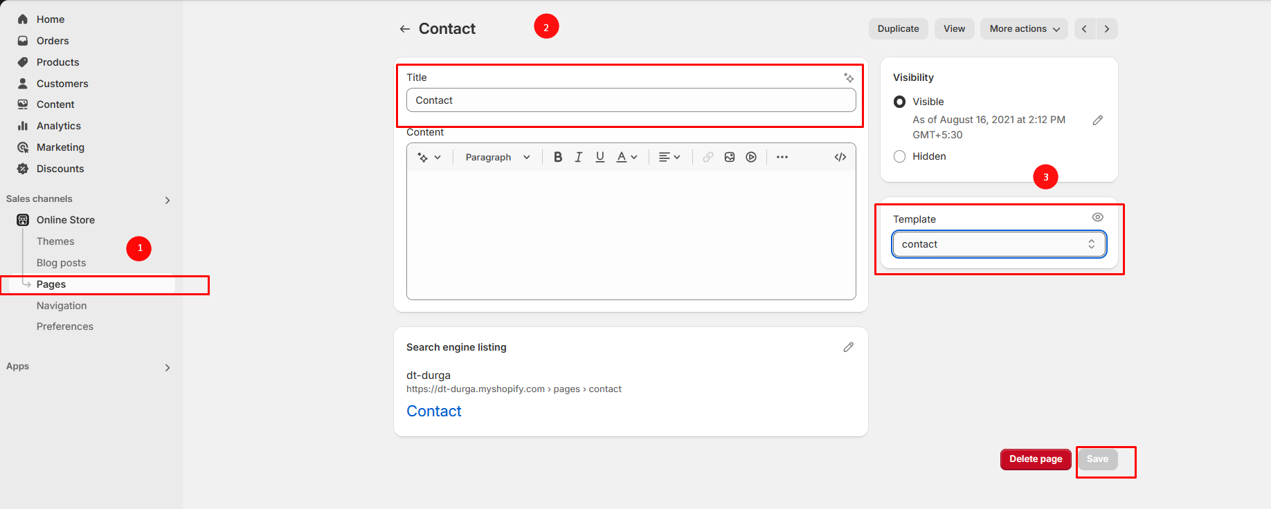 **Step 3 :** Enter the page **Title**.(Eg: Contact)