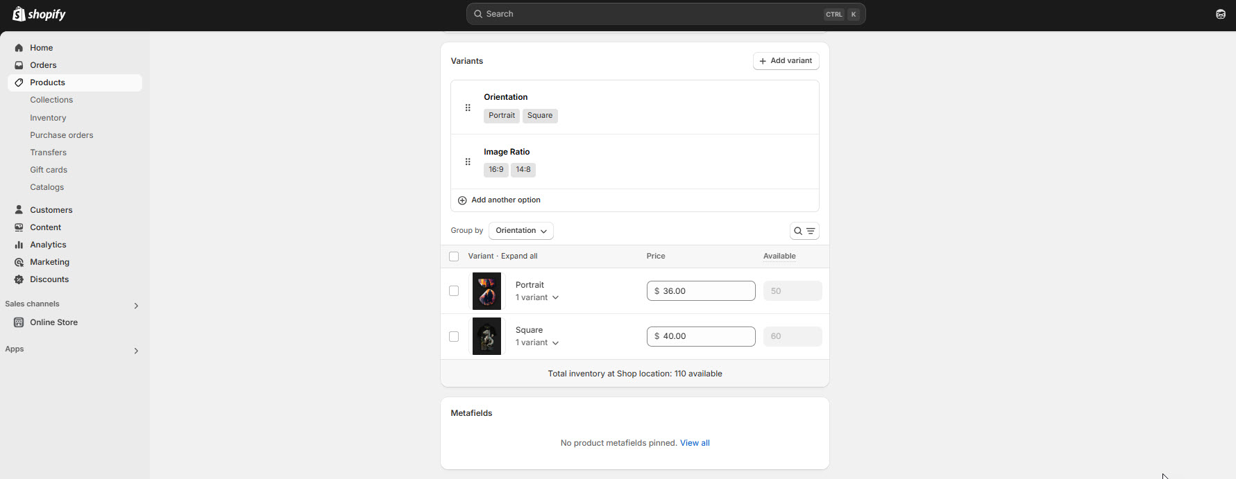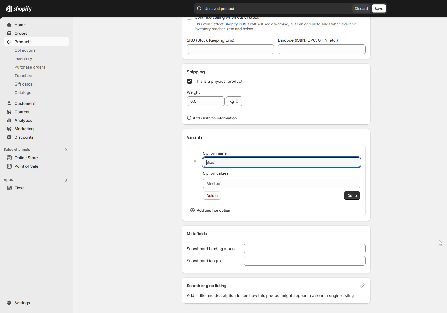 **Note :** Variants are based on options, which are characteristics of the product (e.g., size, color). Each product can have up to 3 options (e.g., Size, Color, Material).