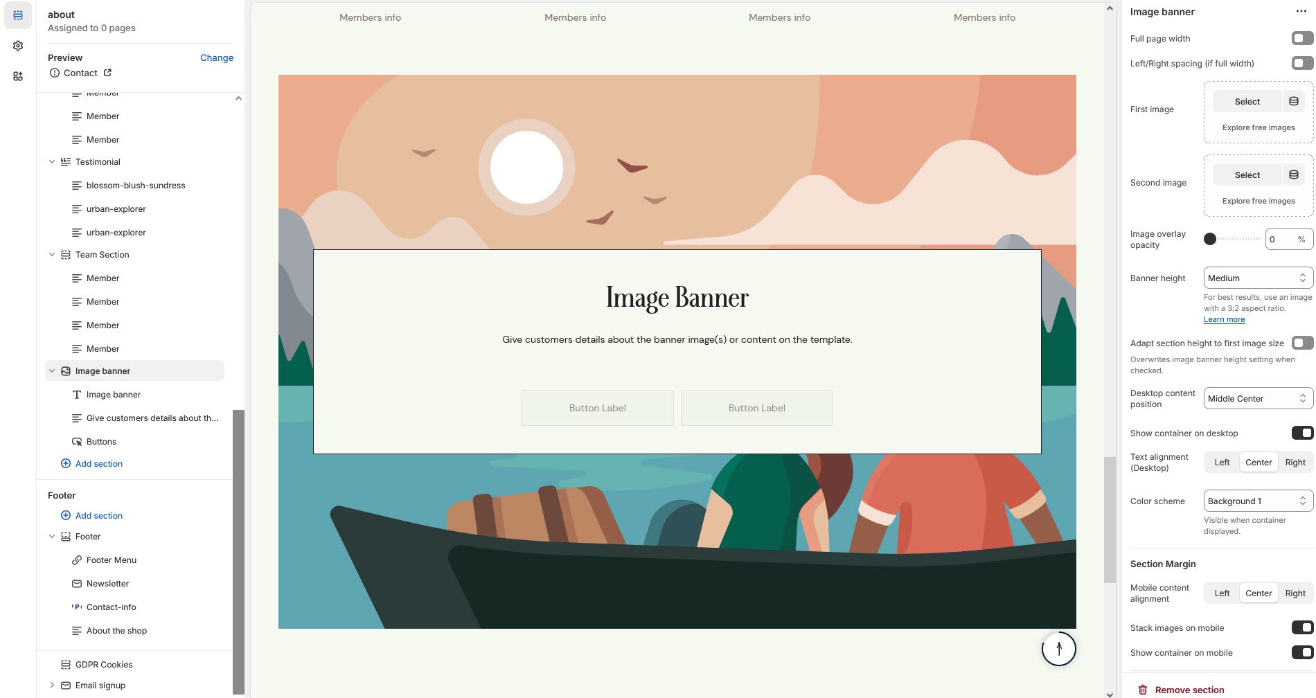 * In the Theme Editor, click **Add Section > Image Banner**.
