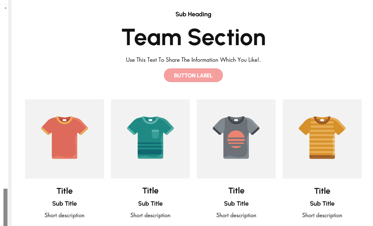 A **Team Section** in Shopify allows you to showcase the members of your team, adding a personal touch to your store and building trust with customers. This section typically includes photos, names, job titles, and brief bios of your team members.