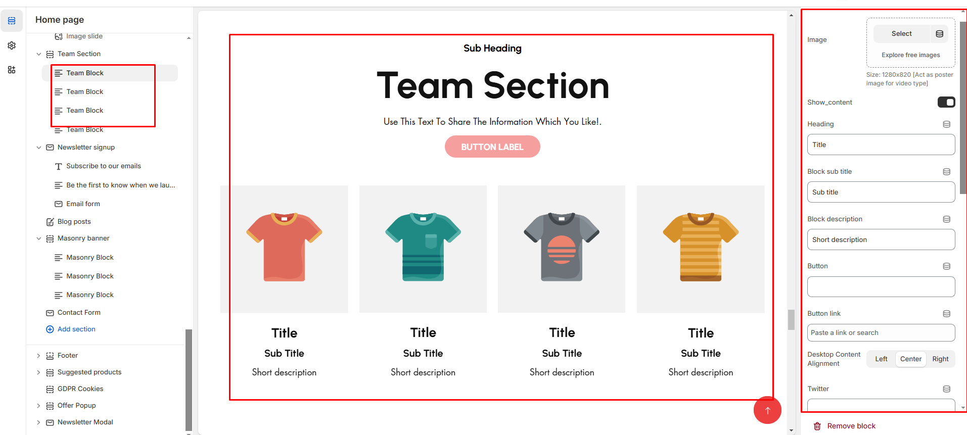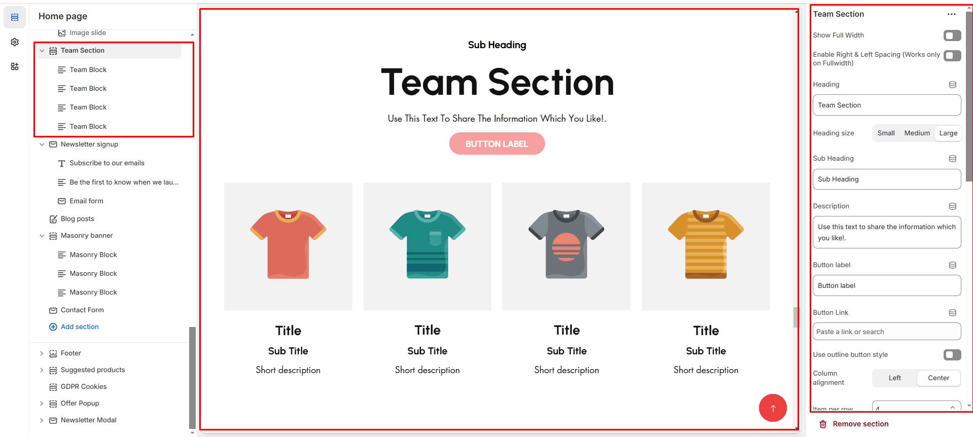 * **Heading:** Set a custom title (e.g., " **Team section** ").