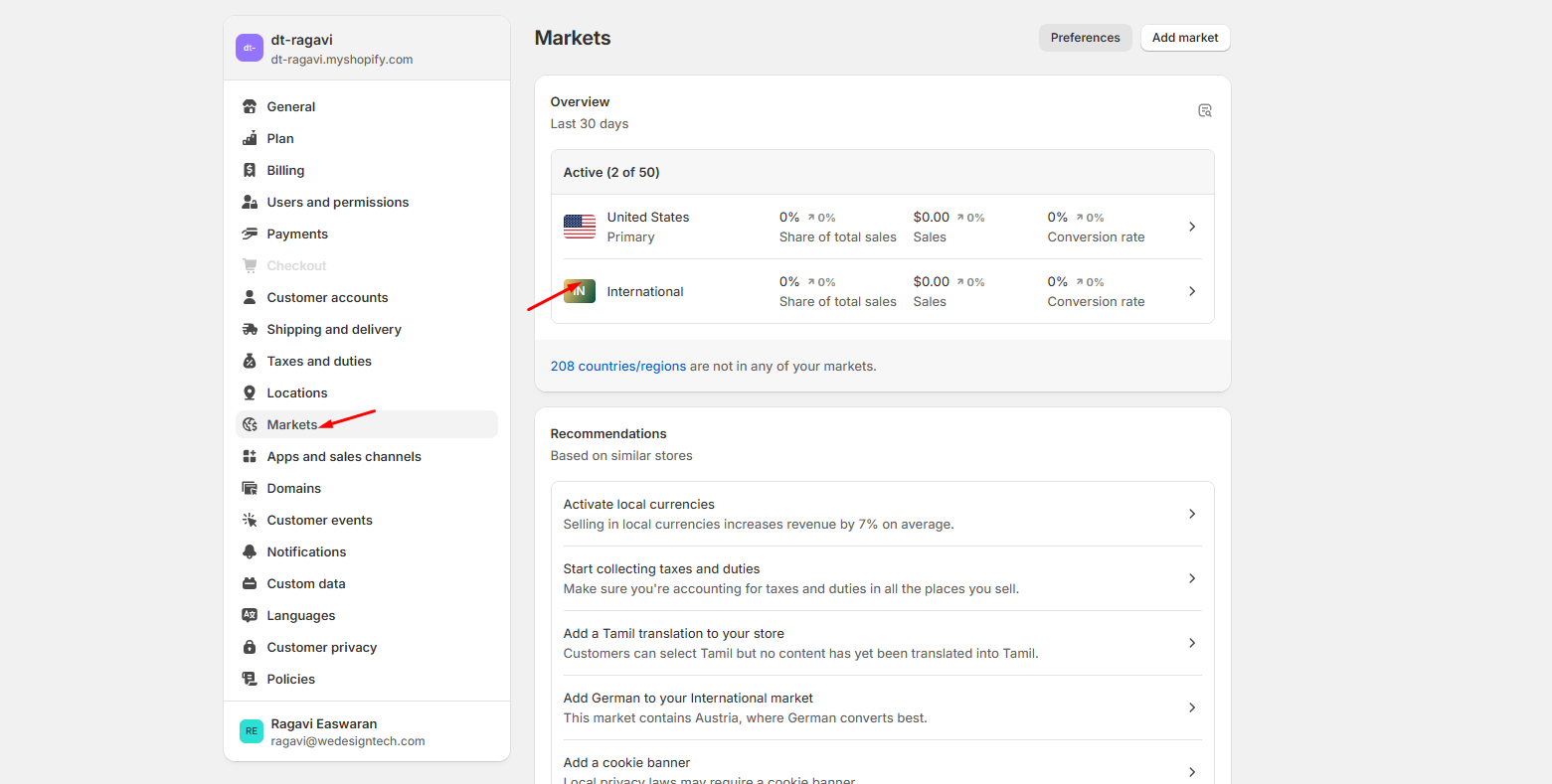 Step 2: Click on "International" > Then click on "Product and Pricing"