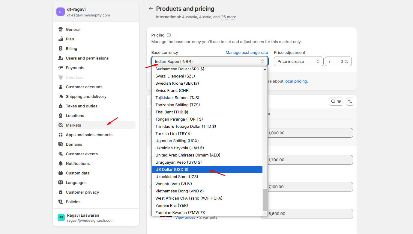 Step 3: Select US Dollar (USD $) and check the box to show pricing