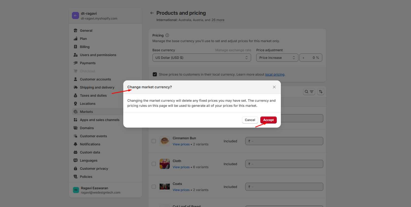 Step 5: A "Change Market Currency" popup will appear, click the "Accept" button.