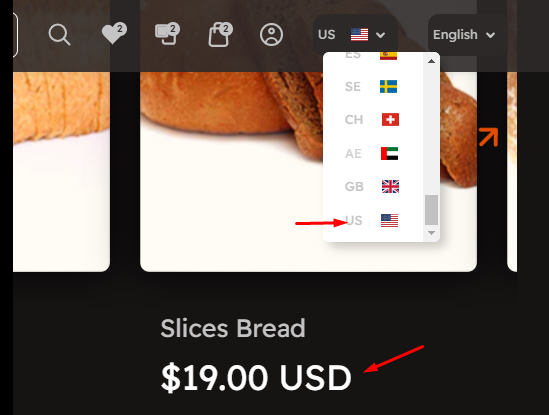 Step 3: The currency will now be enabled in the header (link) > Select “US” state.